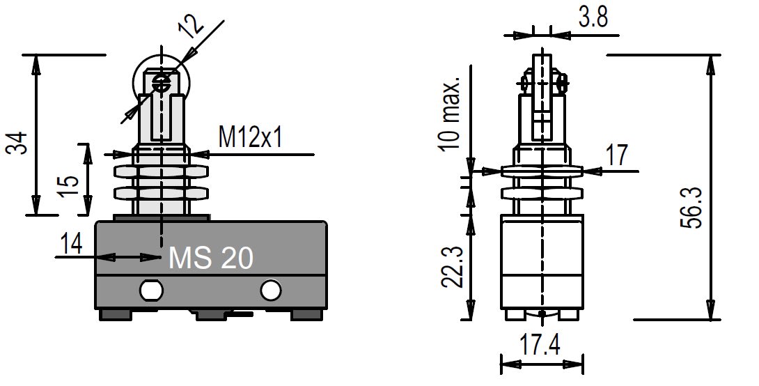 PIZZATO ELETTRICA - PZZMS 20 MICROINTERRUTTORE A PULSANTE FILETTATO C - MS 20