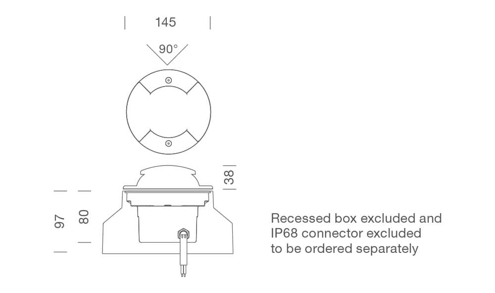 MINI Luce radente - 2 Finestre - Corpo in lega di alluminio EN 44100 pressofuso verniciato e resistente alla corrosione. Protezione con trattamento di anodizzazione, fondo con polveri epossidiche e verniciatura poliestere. Flangia di chiusura in acciaio inox AISI 316. Grado di protezione IP68 con sistema Full Dry che evita la formazione di condensa all'interno del prodotto. Installazione in controcassa gettata nel cemento con un letto di drenaggio di ghiaia di 20-30 cm. Solamente una connessione IP68 alla rete di alimentazione può garantire la stessa protezione all'apparecchio. Alimentatore: 220-240V 0/50/60Hz Ottica: 2 Finestre. LED Bianco 3W 343lm 4000K. Colore: Grigio.