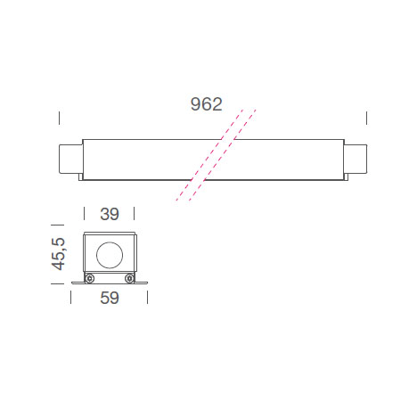 Controcassa per MINI CORNICHE Incasso 900. Dimensioni: L. 962 mm x H. 59 mm x D. 45,5 mm.