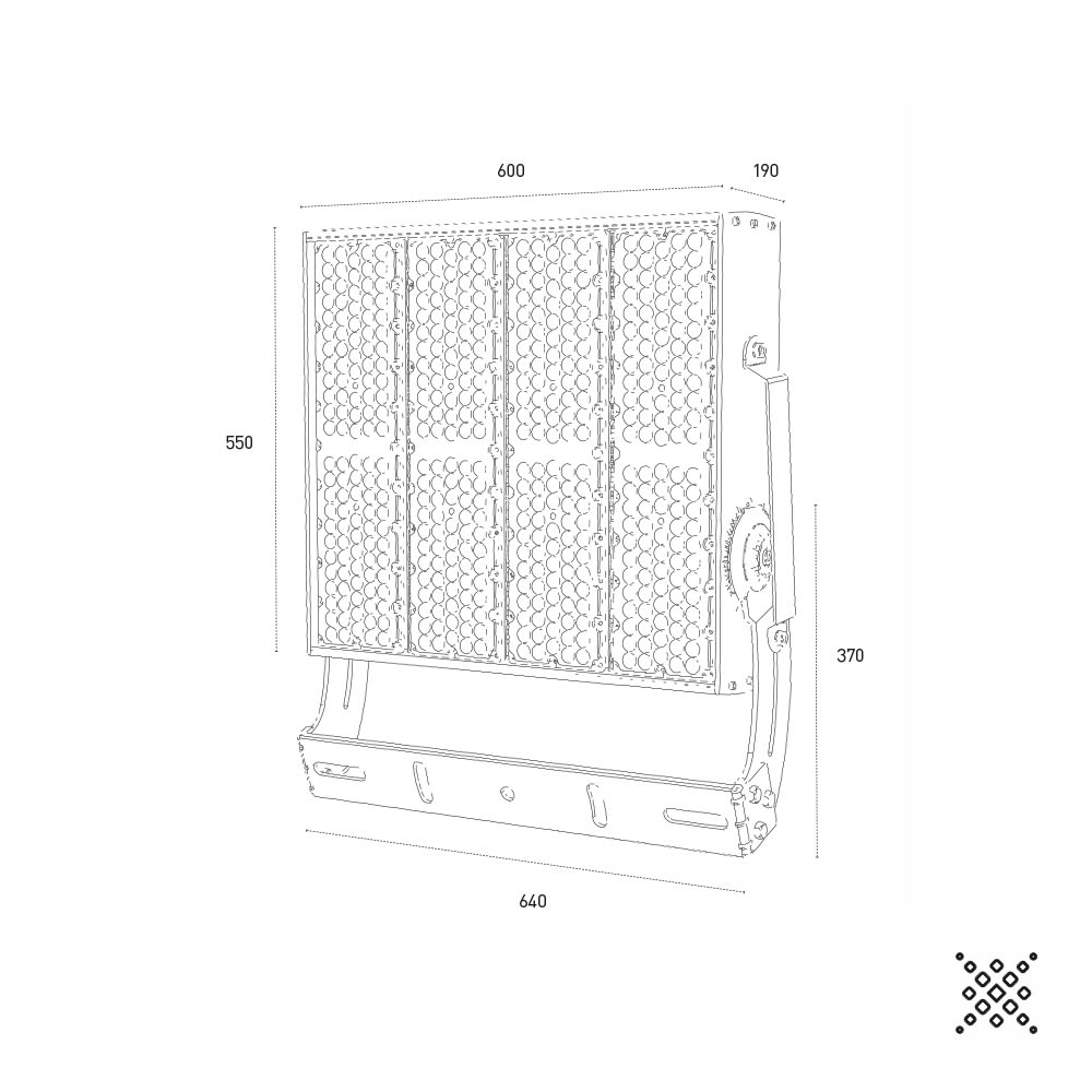 PROIETTORE DA ESTERNO AD ALTE PRESTAZIONI CON SISTEMA OTTICO MULTICHIP PER MIGLIORARE LA DISTRIBUZIONE DELLA LUCE E GARANTIRE UNA ELEVATA EFFICENZA E AFFIDABILITÀ, CORPO CON RESISTENZA AERODINAMICA MIGLIORATA, PASSIVATO E VERNICIATO CON VERNICI EPOSSIDICHE AD ALTA RESISTENZA, BULLONERIA IN ACCIAO INOX E SISTEMA GONIOMETRICO PER UNA PRECISA REGOLAZIONE DEL FASCIO DI LUCE