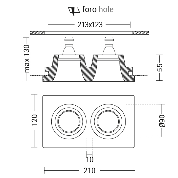 ROSSINI - RSSAGA001 DOWNLIGHT DOPPIO TONDO IN GESSO RASATO B - AGA001