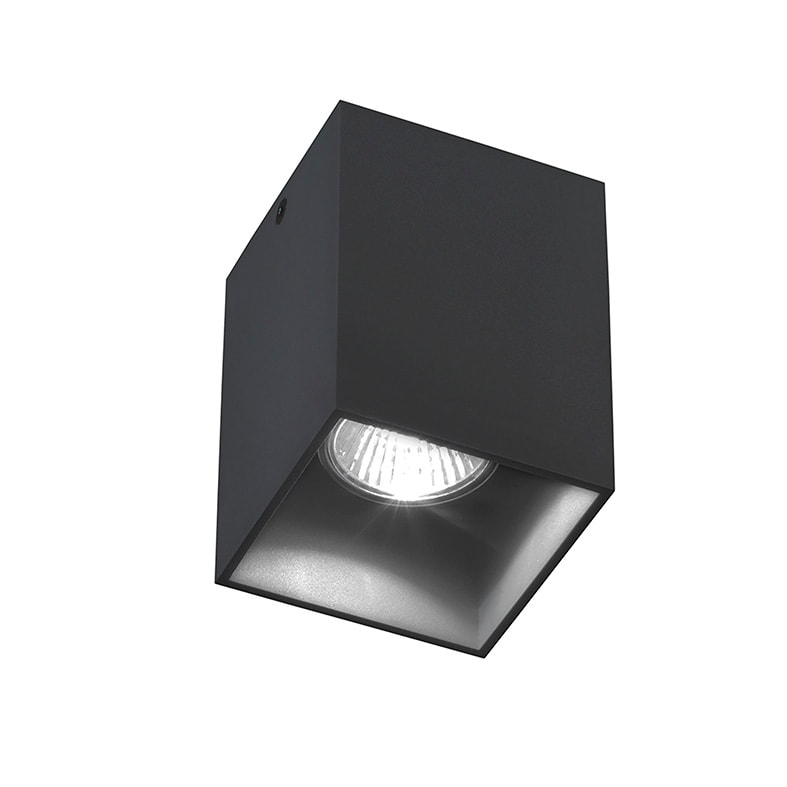 Apparecchio a soffitto con attacco GU10 che consente di montare lampadina LED. Struttura tonda o quadrata in pressofusione di alluminio verniciato con polveri epossidiche ad elevata resistenza. Dispon ibile in sei finiture a seconda del modello.
