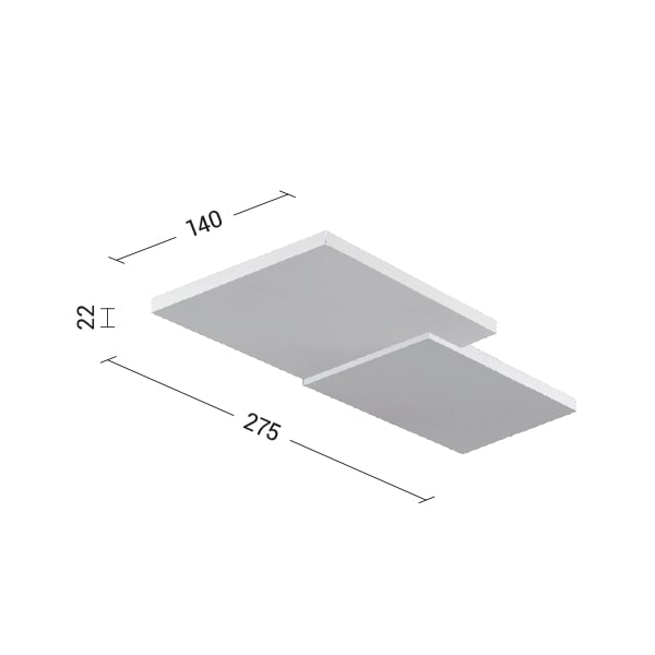 Lampada da parete a luce indiretta di forma squadrata con sorgente LED integrata (2700K), dimmerabile. Struttura in alluminio ad alto spessore lavorato dal pieno verniciato a polveri. Disponibile in d ue finiture: bianco e nero.