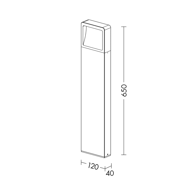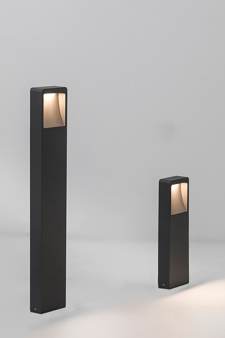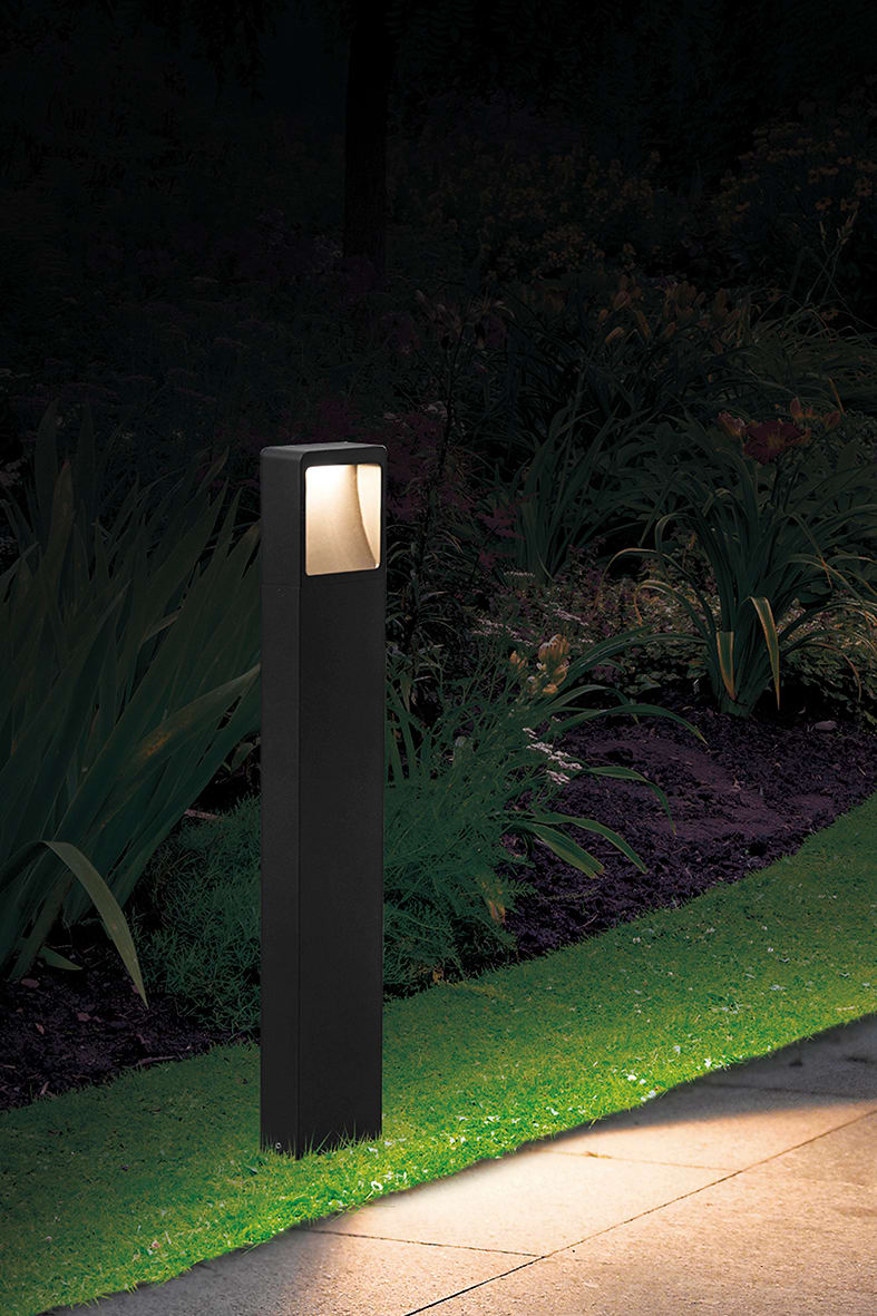 Paletto LED (3000K) da terra per esterno (IP54), i n pressofusione di alluminio verniciato a polverecon pretrattamento per uso esterno. Vetro di prote zione del LED opaco e alimentatore LED integrato.Grazie al suo design moderno ed elegante si adatta perfettamente allo stile di qualsiasi giardino o cortile esterno. Disponibile in due altezze e due finiture (antracite e corten). Disponibili giunticertificati IP68per la realizzazione delle connessioni elettriche, sicure, durevoli e con barriera a nticondensa.