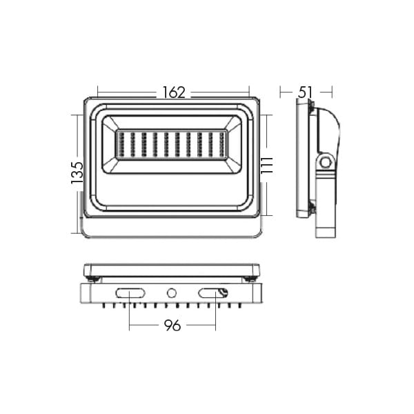 Proiettore LED per esterno (IP65) a soffitto o a parete . Struttura in pressofusione di alluminio verniciato nero resistente a impatti e urti. Orientabile su unico asse di 340? e diffusore in vetro trasparente. Disponibile in diverse misure e relative potenze, due temperature colore e nella versione con sensore a raggi infrarossi di presenza per le potenze da 10W e 30W (rilevazione movimento finoa 12mt di distanza con periodo di accensione regolabile tra 5 sec. e 5 min.). Alimentatore LED integrato. Disponibili giunti certificati IP68 per la realizzazione delle connessioni elettriche, sicure, durevoli e con barriera anticondensa.