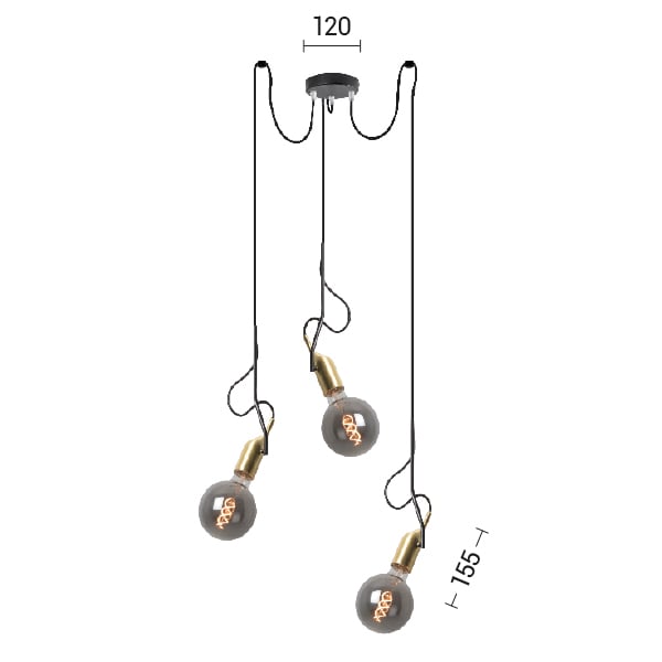 ROSSINI - RSSKAR004NOTS SOSPENSIONE 3 ELEMENTI NERA/OTTONE SATIN - KAR004NOTS