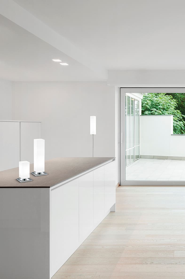 ROSSINI - RSSP.3598-20 LAMPADA DA TAVOLO CROMO/VETRO BIANCO SAT - P.3598-20