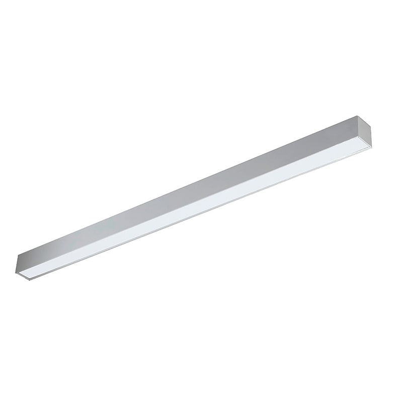 Apparecchio LED a soffitto e a sospensione a luce diretta. Corpo in lamiera di acciaio, verniciatura con polveri epossidiche, resistente agli ambienti umidi e stabilizzata ai raggi UV e schermo diffusore in policarbonato opale, per un effetto di luce diffusa. Disponibile in due lunghezze e relative potenze, due temperature colore (3000K e 4000K) e in due finiture (bianco e grigio). Apparecchio da completare con kit sospensione e schermi da ordin are separatemante.