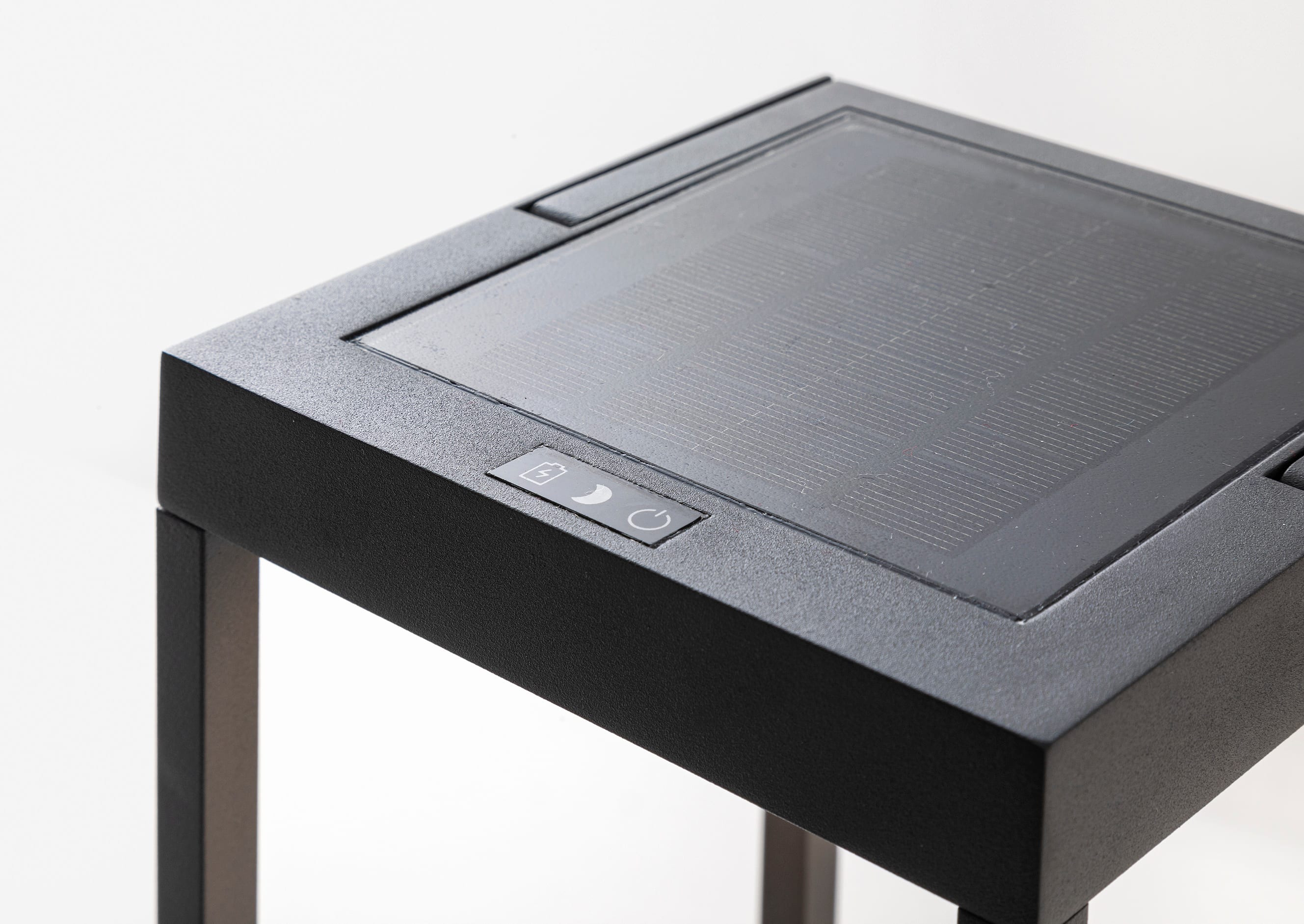 Lampada da terra e da tavolo a LED (3000K) portatile e a ricarica solare, ideale per illuminare le tue serate estive e creare l'atmosfera giusta per un aperitivo o una cena tra amici, grazie al suo design moderno e curato in ogni dettaglio. Strutturainpressofusione di alluminio verniciato con trattamento per uso esterno (IP54). Si caratterizza per la fonte luminosa LED con pannelli solari in pol icristallino integrati, ricaricabili con cavo USBo con luce solare. L'intensità della luce è regolabile con accensione e spegnimento manuale o con sensore crepuscolare per 12 ore di luce. Possibilità di installazione a parete tramite apposito gancio richiudibile incluso. Disponibile nella finituraantracite e in due altezze.