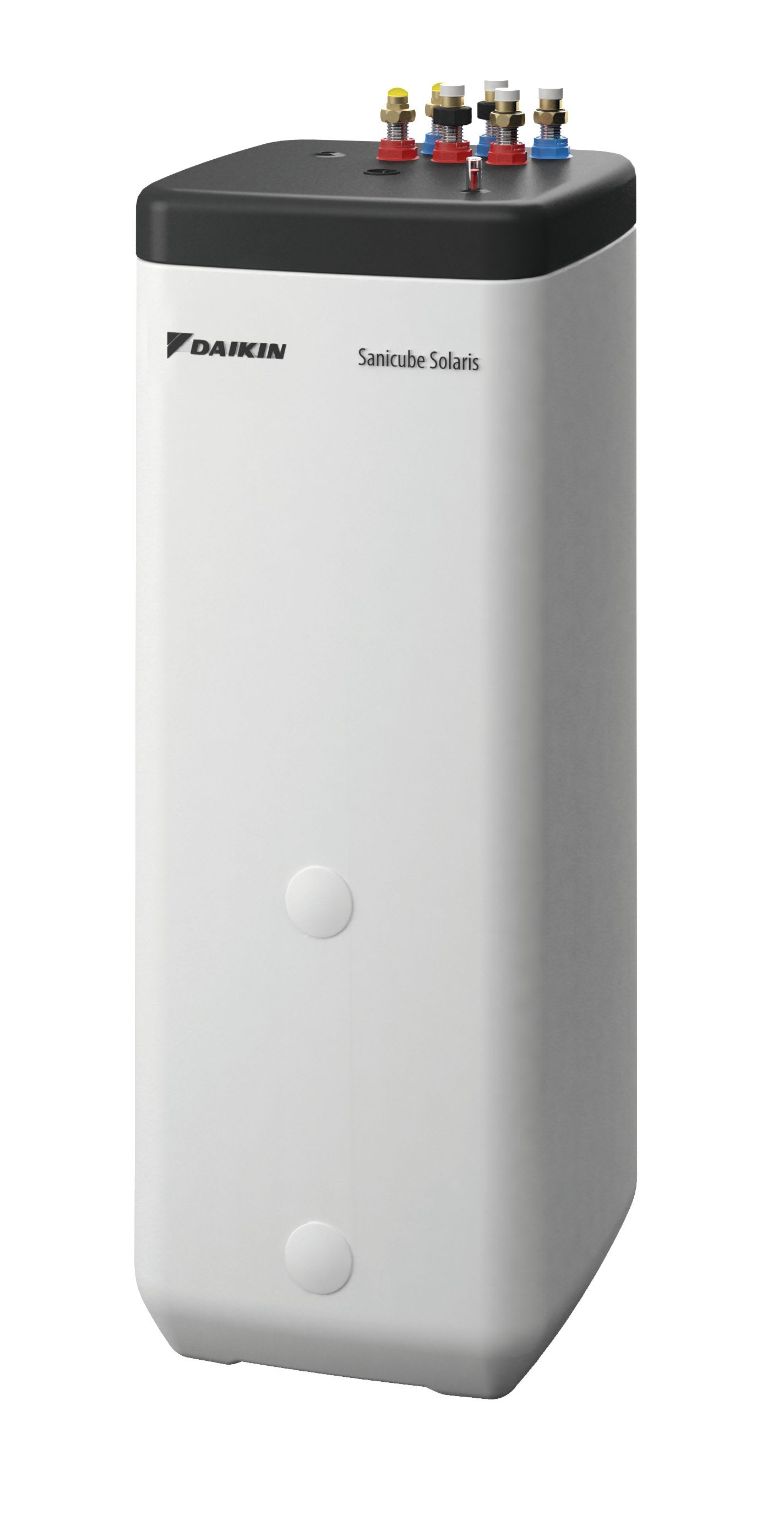 DAIKIN propone Accumulatore di calore per produzione di acqua calda sanitaria SanicubeAccumulatore d'energia ad alto rendimento da 500 litri per la produzione di acqua calda sanitaria, integrazione del riscaldamento e per funzionamento bivalente con generatore di calore supplementare.- Accumulatore di calore in plastica con scambiatori termici in tubo corrugato in acciaio inossidabile- Capienza 500 litri- Combinazione tra accumulatore di energia e scaldacqua istantaneo per la produzione di acqua calda sanitaria- Igiene dell'acqua ottimale- Opzione solare integrata per sistemi solari termici Drain-Back (DB) o in pressione- Possibilità di combinare più serbatoi di accumulo per costruire sistemi in grado di soddisfare grandi utilizzi di acqua calda