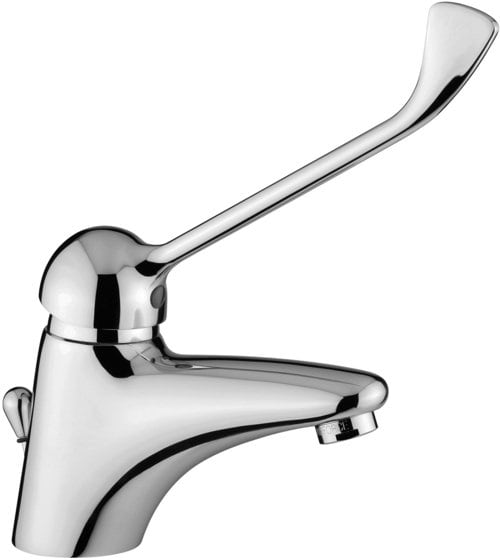 Collezione DUEMILA DESCRIZIONE Miscelatore lavabo completo di: • aeratore M24x1 • set 2 flessibili inox 3/8”G DU 305 . . con scarico automatico 1”1/4G • con leva clinica FINITURE DU CR - cromo