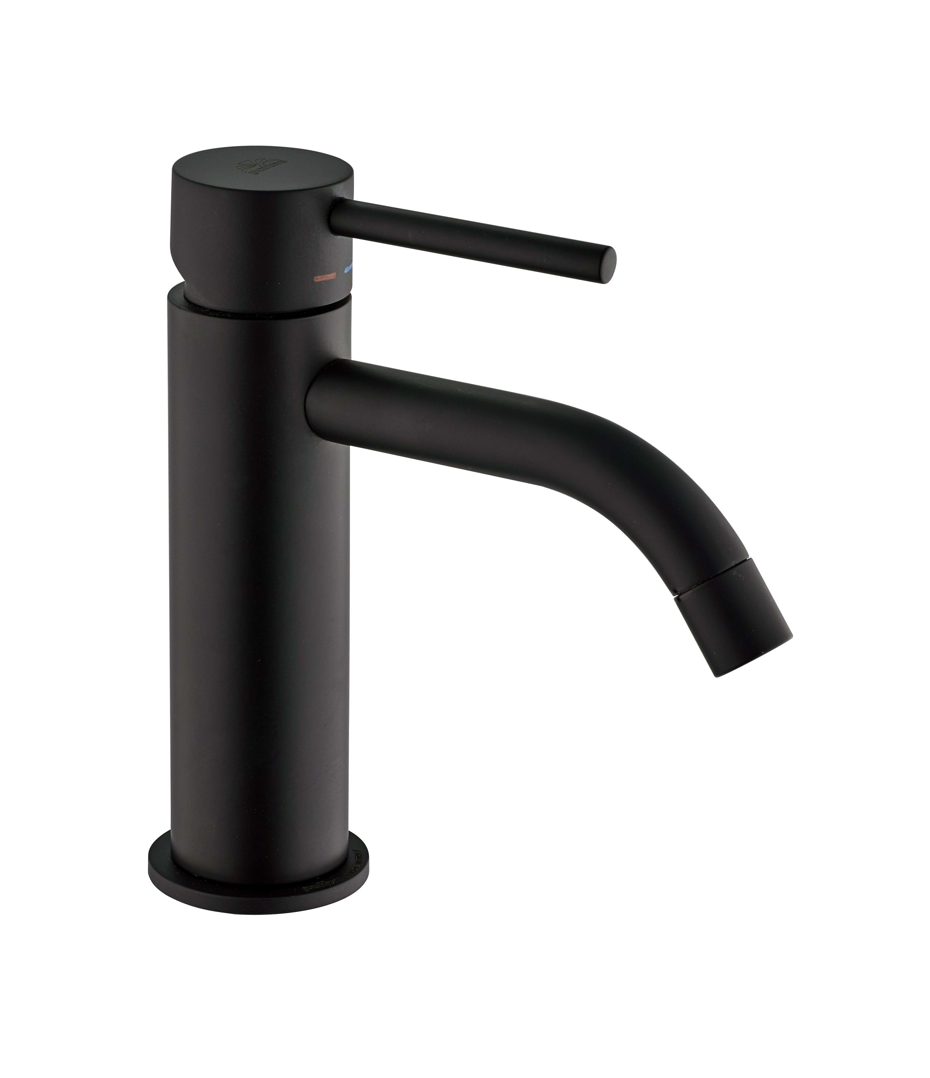 Miscelatore lavabo senza scarico, completo di: • aeratore M16x1 • set 2 flessibili inox 3/8”G. Finitura nero opaco