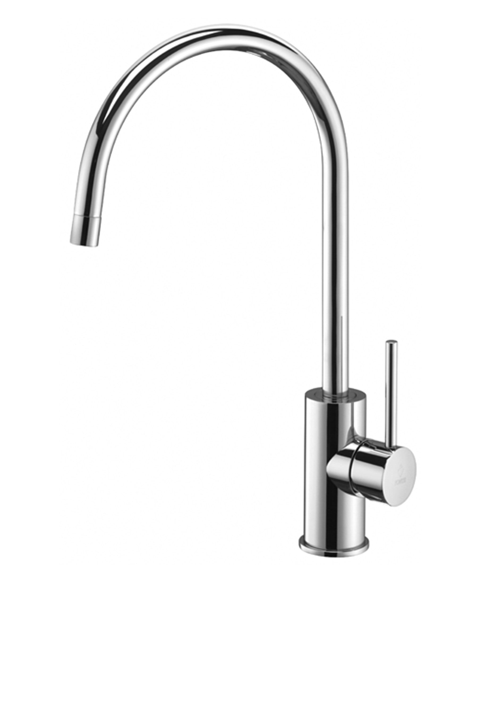 Miscelatore lavello monoforo con canna tubo orientabile, completo di: • aeratore M16x1 • set 2 flessibili inox 3/8”G. Finitura cromo