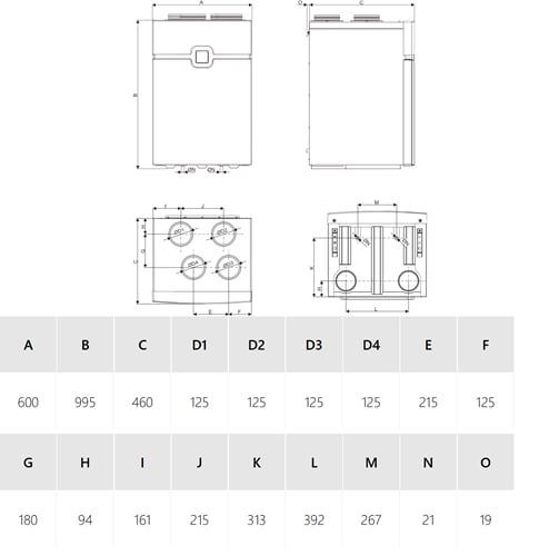 Efficienza termica al 70 % del volume d'aria a 50 Pa: