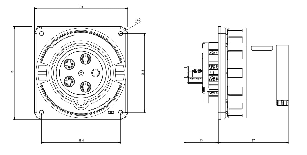 SCAME PARRE SPA - SCASCM560B7W SPINA DA INCASSO 60A 4P 5W 7H IP67 - SCM560B7W
