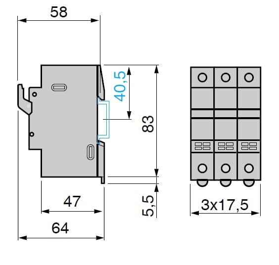 Portafusibile modulare TeSys DF, 3 poli (3P), per la protezione di circuiti di controllo fino a 32 A/690 V. Da utilizzare con collegamenti fusibile 10x38 mm fino a 32A e ha corrente di cortocircuito fino a 120 kA a 400 V. Fornisce un'indicazione di fusibile bruciato tramite LED. Compatto (52,5 mm di larghezza), può essere utilizzato in pannelli modulari, con aggancio su guida DIN da 35 mm, collegamento mediante morsetti a vite, lucchettabile senza accessorio. Sono disponibili collegamenti fusibili (10 x 38mm aM, tipo gG) e ausiliari aggiuntivi (kit di assemblaggio portafusibili, marcatori a scatto) (da ordinare separatamente). Venduto in confezione da 4 unità. Certificazione secondo diverse norme (IEC, riconosciuto da UL, CSA, CCC, EAC, Marine).