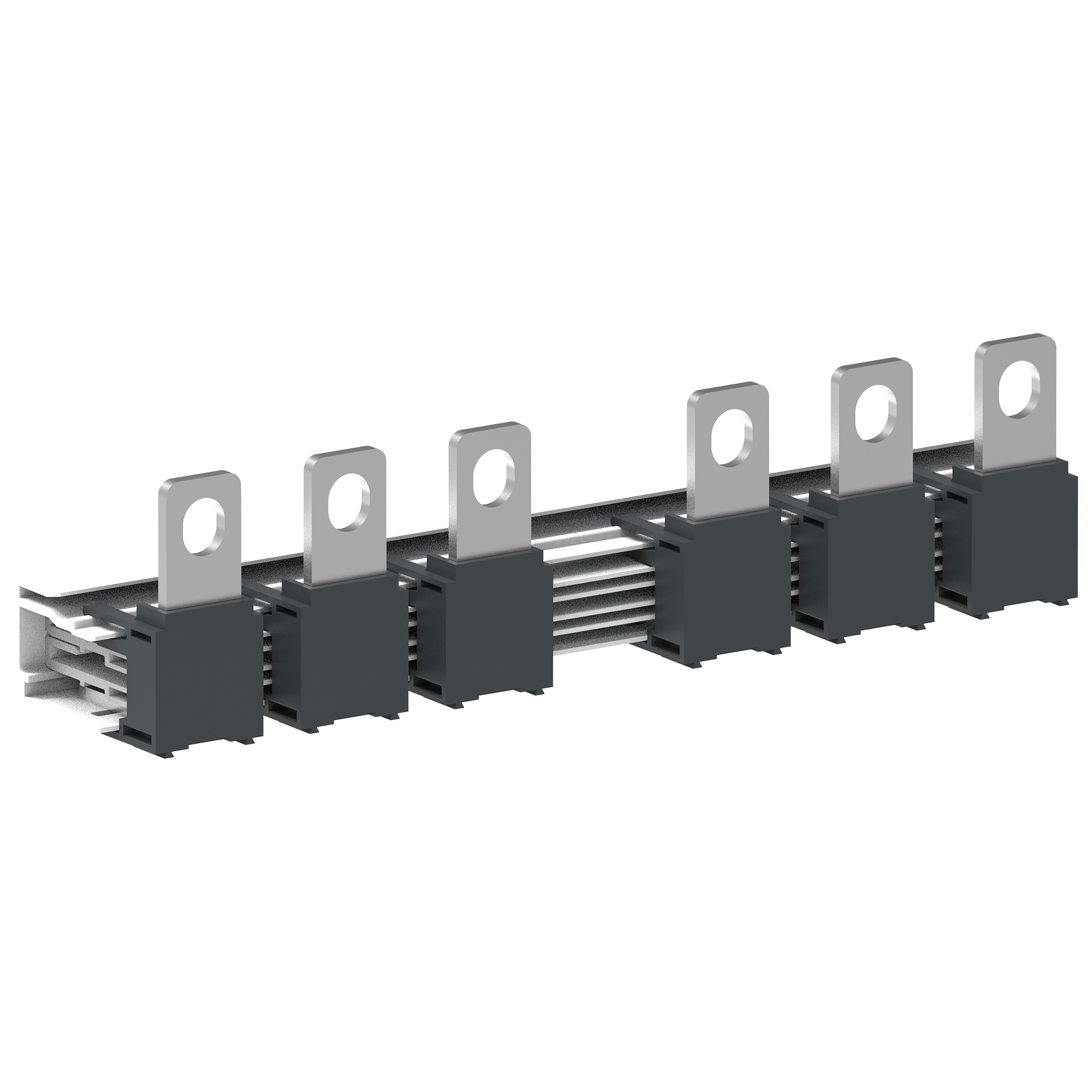Questi accessori sono barre di commutazione per il contattore TeSys Giga 115-225. Viene utilizzato per il circuito elettrico a 3 poli. Queste estensioni dei morsetti possono essere collegate ai morsetti standard. La corrente nominale è fino a 225 A. Può coprire temperature ambiente di funzionamento da -25°C a 60°C, senza declassamento fino a 3000 m di altitudine.