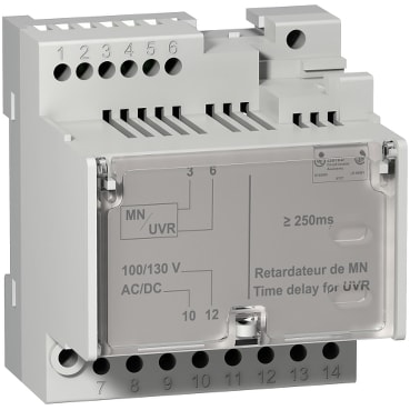 Sganciatore di minima tensione ritardato, marca SCHNEIDER ELECTRIC S.P.A, modello SNRLV833684SP - RITARDATORE MN NO REG 100 130 VCA CC