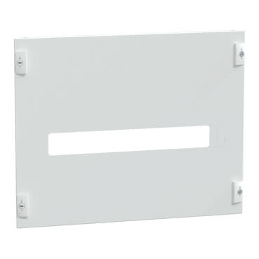 PrismaSeT P & G front plate, for Transfer Pact 160A, 3P and 4P. Type of front plate is cut-out plate. Number of device per horizontal rows is one, with vertical 8 modules. To be part of a PrismaSeT P & G vertrcal mounted front plate. for floor-standing enclosure - width 650 + 150 mm depth 400 mm. Front plate made with Epoxy powder coat treated sheet steel. matt/textured surface finition with white (RAL 9003). Ambient air temperature for operation is from 25 to 55 °C conforming to IEC 61439-1/ IEC 61439-2.