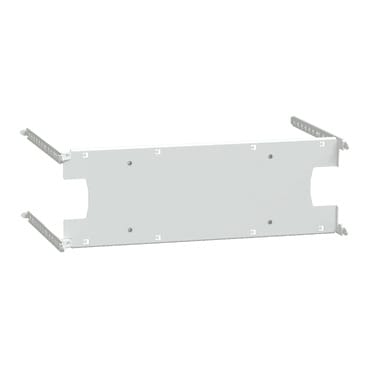 Piastra di montaggio PrismaSeT P per Patto di trasferimento 63A, 3P/4P. Tipo di piastra di montaggio piastra piena. Il numero di dispositivi per fila orizzontale è 1, con 6 moduli verticali. Da inserire in una piastra frontale fissa verticale PrismaSeT P. per armadio a pavimento - larghezza 650/800 mm e profondità 400 mm. Piastra di montaggio in lamiera d'acciaio trattata con polvere epossidica. finitura superficiale opaca/testurizzata con bianco (RAL 9003). La temperatura ambiente di funzionamento è compresa tra 25°C e 55°C, in conformità con l’IEC 61439-1/ Β 61439-2.