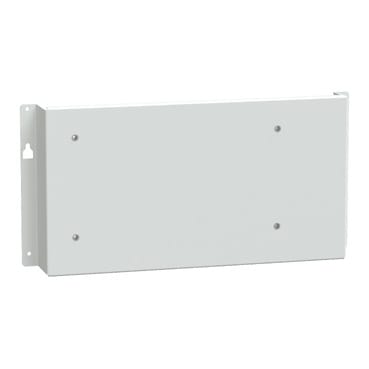 PrismaSeT G Mounting Plate for Transfer Pact 160A, 3P/4P. Type of Mounting plate is plain plate. Number of device per horizontal rows is 1, with vertical 8 modules. To be part of a PrismaSeT G vertical Fixed front plate. for floor-standing enclosure - width 600/850 mm & depth 200 mm. Mounting Plate made with Epoxy powder coat treated sheet steel. matt/textured surface finition with white (RAL 9003). Ambient air temperature for operation is from 25 to 55 °C conforming to IEC 61439-1/ IEC 61439-2.