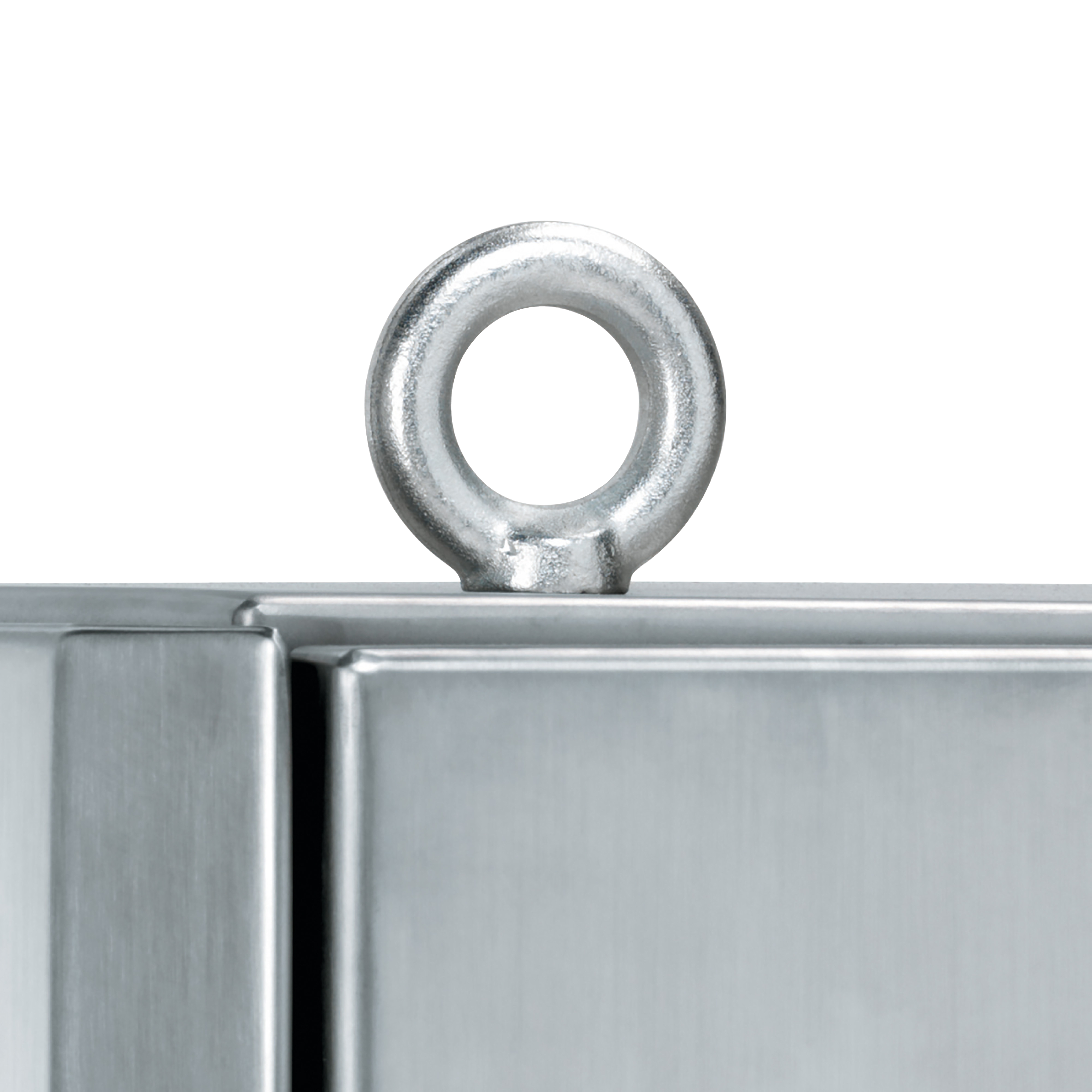 Set di occhielli AISI 304 in acciaio inox M12 per sollevamento e trasporto delle suite PanelSeT SFX, PanelSeT SMX, PanelSeT SF e PanelSeT SM Il kit è costituito da 4 occhielli, 4 dadi di fissaggio e 4 rondelle Il carico massimo è di 340 kg per 1 golfare in direzione verticale