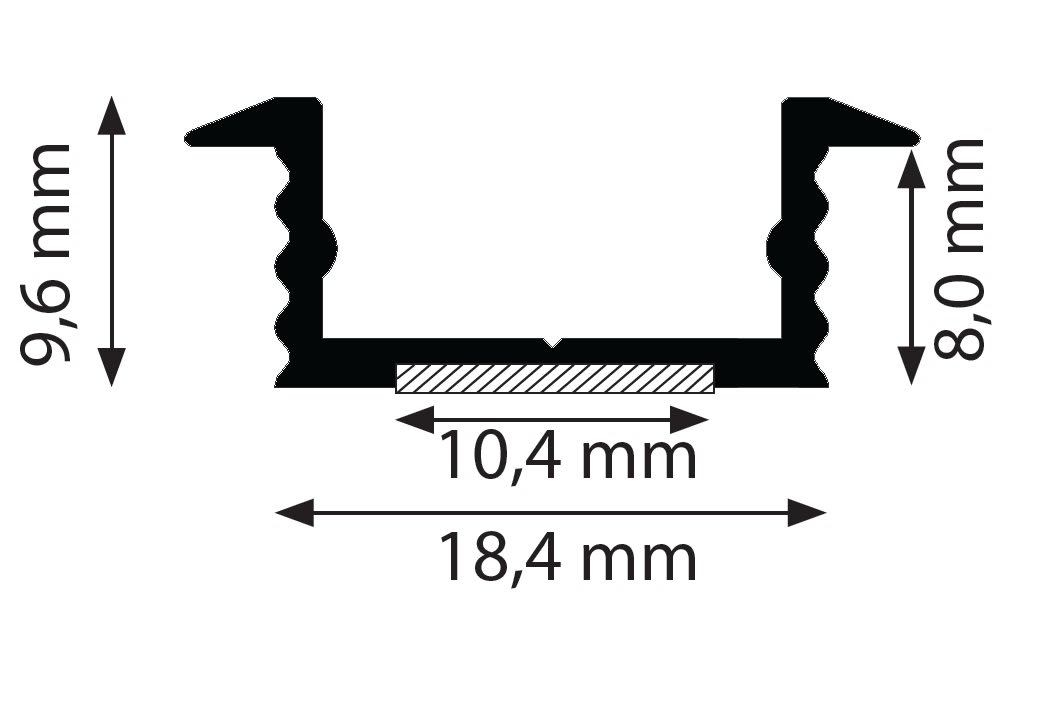 SIRIOprofile basic I7 - 2 m. B x H x L (mm): 18,4 x 9,6 x 2000.