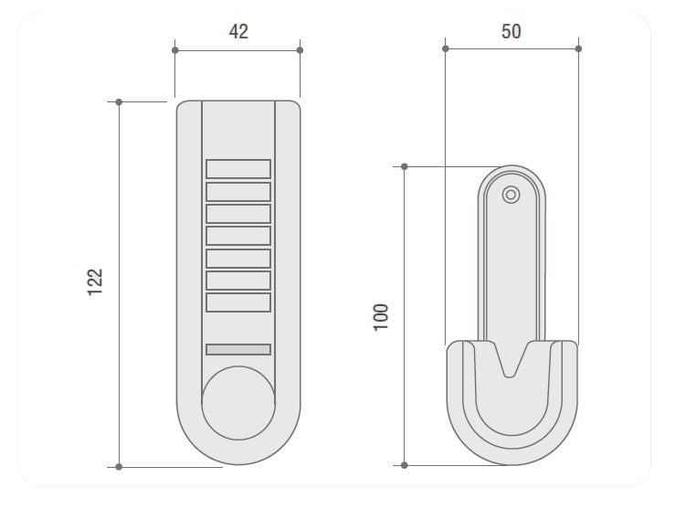 Trasmettitore wireless portatile 7 pulsanti con clip di fissaggio a parete ideale per il comando di 1 punto luce con possibilità di gestione di 4 scenari di luce e funzione dimmer UP/DOWN/OFF. Alimentazione 3V ± 10% (batteria al litio CR2430). Temperatura di esercizio -10° +55°C. Bianco.