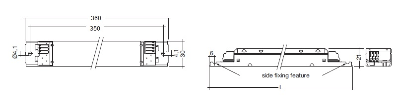 Reattori elettronici per lampade fluorescenti T5. Durata nominale di max. 100.000 h ( con ta 50 ° C e margine d’errore di max. 0,1 % per 1.000 h). Ampia gamma di temperature (per i valori si veda tabella). Flusso luminoso costante a prescindere dalle fluttuazioni della corrente di rete. Advanced Smart Heating per min. 50.000 accensioni senza sostituzione di lampade. Riaccensione automatica a seguito alle sostituzione delle lampade difettose. Spegnimento di sicurezza di lampade difettose e usurate (EOL 2). Predisposto per THD < 10 %. Intelligent Voltage Guard (indicazione di sovratensione e spegnimento in caso di sottotensione). Per apparecchi illuminanti in classe di protezione I e II. Idoneo per i sistemi d’illuminazione di emergenza che ottemperano alla EN 50172. Morsetto IDC (Insulation Displacement Connection) per cablaggio rapido automatico o manuale