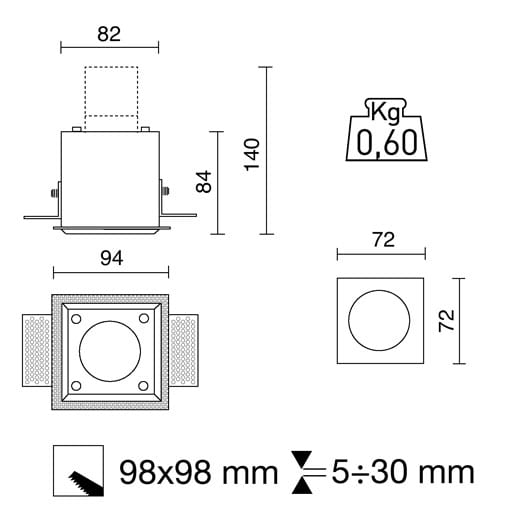 Adatto per montaggio a incasso: