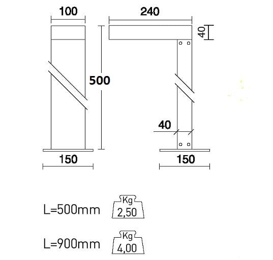 SIDE SPA - SDEE4073AS-LBN ELLE XS H.500MM 14W 1931LM 4000K IP65 BW - E4073AS-LBN