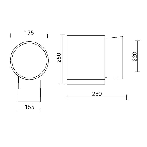 MONO LIGHT 175 LED. Fissaggio a Parete. Corpo in pressofusione di alluminio EN AB-47100. Colore: Nero. Riflettore ottica: Lente LED in metacrilato. Equipaggiamento: Guarnizioni in gomma siliconica. Vetro / schermo: Vetro temprato chiaro. Pressacavo: Passacavo in gomma siliconica PG11. Alimentatore: alimentatore integrato per diodi LED, uscita stabilizzata 1050mA dc. Fascio: Simmetrico diffondente 40 gradi. Tipo LED: Power LED. Potenza complessiva: 36 W. Flusso apparecchio: 2970 lm. Durata nominale: 50000 ore L80 B20. Temperatura di colore: 3000K. Indice resa cromatica: 80. Lampada: 1 x LED 32 W 3300 lm.