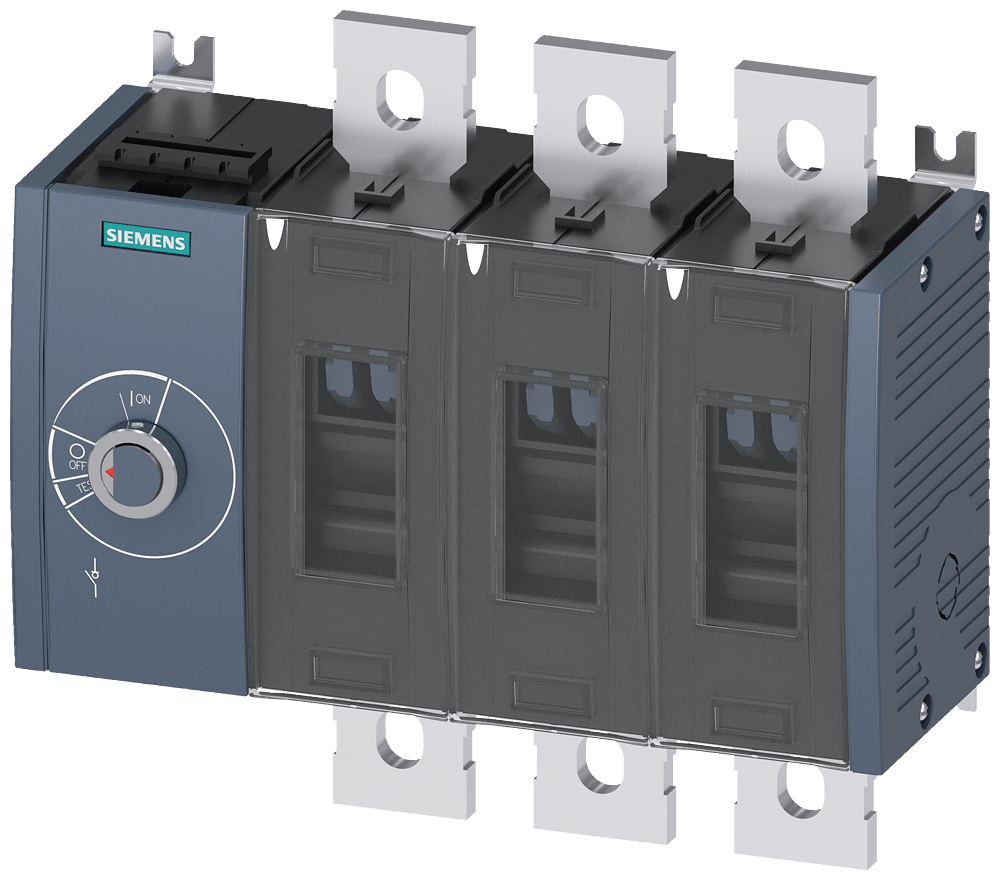 sezionatore sottocarico 500A, grand. costr. 4, a 3 poli comando laterale a sinistra apparecchio di base senza maniglia attacchi piatti Sezionatori sottocarico 3KD fino a 1600 A come interruttori principali, di OFF di emergenza o interruttori per manutenzione, altamente performanti. I sezionatori sottocarico di Siemens assicurano una protezione affidabile per le persone e garantiscono una elevata disponibilità degli impianti nellindustria, nellinfrastruttura e negli edifici. Essi possono essere utilizzatiin vari modi e sono adatti per impianti eolici e solari. Gli interruttori principali, di OFF DI EMERGENZA o di riparazione 3KD sono disponibili in diverse varianti con tipi di collegamento e di azionamento variabili. Sono disponibili anche varianti per applicazioni in corrente continua. Sicurezza integrale per utenti e sistemi.