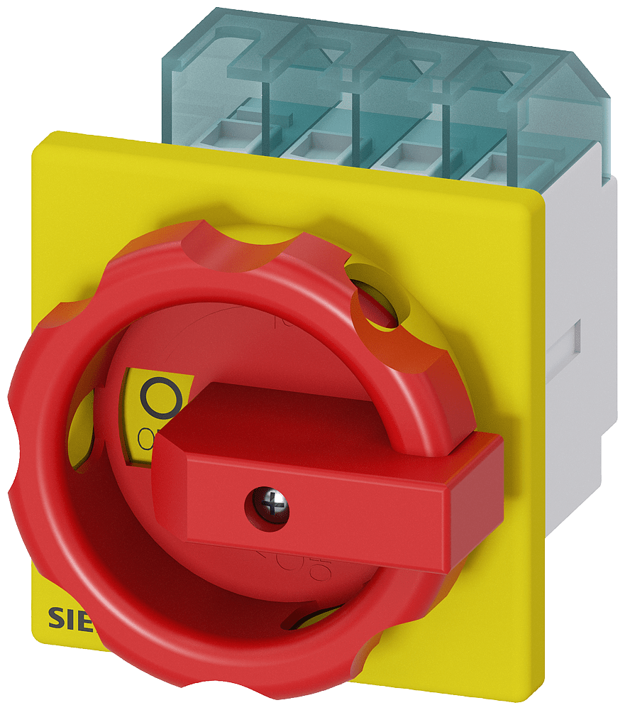 SENTRON, sezionatore sottocarico 3LD, interruttore di arresto di emergenza, 3- poli, Iu: 16 A, potenza di impiego / per AC-23 A con 400 V: 7,5 kW, fissato frontalmente, comando rotativo, rosso/giallo fissaggio a 4 fori delloperatore Sezionatori sottocarico SENTRON 3LD2 per la disinserzione sicura dei carichi in numerosi settori, ad es. per motori trifase, impianti di climatizzazione e ventilazione, costruzione di macchine di lavorazione e di impianti di trasporto industriale, nellindustria chimica o nellindustria dei generi alimentari e delle bevande. Struttura modulare, montaggio semplice e rapido di blocchetti di contatti ausiliari, morsetto PE/N o 4º polo. Ottimale sezionamento dalla rete da 16 A a 250 A grazie alla lucchettabilità del comando rotativo. Grado di protezione fino a IP65 con involucro incapsulato adatto per applicazioni allaperto. Impiego versatile e universale grazie ad approvazioni internazionali IEC, UL, CCC e per la costruzione navale. Gli interruttori principali e gli interruttori di OFF di emergenza 3LD sono disponibili in molteplici varianti per il fissaggio frontale, su piastra di montaggio, su guida DIN o montaggio in quadro di distribuzione, a scelta con comando rotativo bloccoporta diretto o rinviato. I 3LD2 sono disponibili anche con varianti per applicazioni in corrente continua. Interruttori principali e di OFF di emergenza 3LD - Sicurezza integrale per utenti e sistemi.