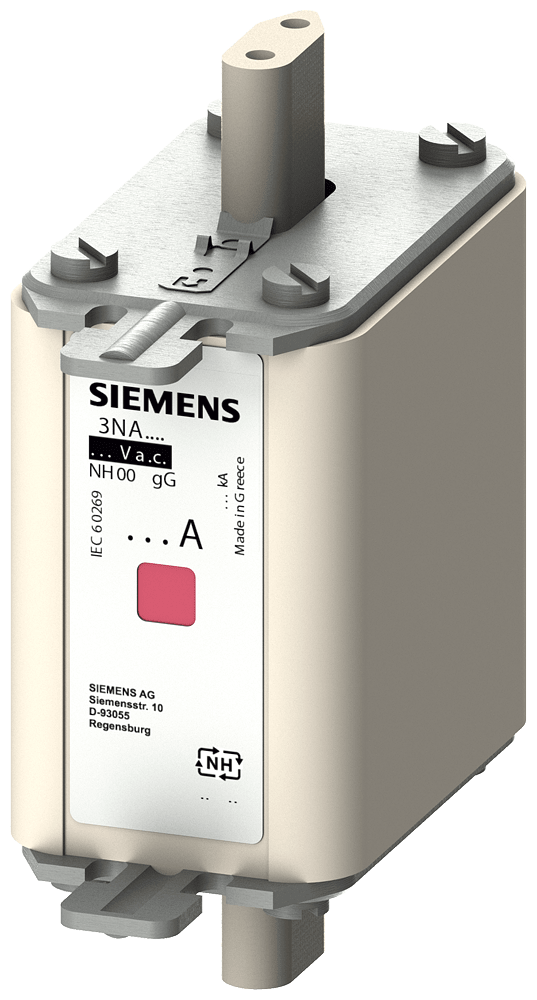 cartuccia fusibile NH, NH00, In: 100 A, gG, Un AC: 690 V, Un DC: 250 V, indicatore combinato, attacchi sotto tensione Cartuccia fusibile NH SENTRON 3NA7 per la protezione selettiva dei cavi e dellimpianto. Il sistema di fusibili NH offre una protezione efficace per le persone, gli apparecchi e gli impianti grazie alla disinserzione sicura in caso di sovraccarico e cortocircuito. Segnalazioni combinate rivelano lintervento del fusibile mediante un chiaro cambio di colore da rosso a bianco. Le cartucce fusibili NH sono disponibili da 2 A a 1250 A e nelle grandezze costruttive 000, 00, 0, 1, 2, 3, 4 e 4a. Le varianti con funzione di comunicazione e di misura nella grandezza costruttiva 2 da 80 A fino a 315 A. Dispositivi di protezione SENTRON - Una scelta sicura. Ora ancora più intelligenti.