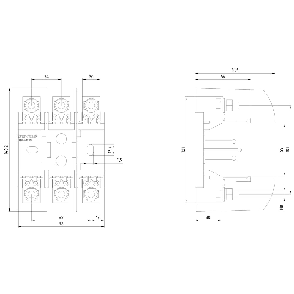 SIEMENS - SIE3NH8030 BASE 3P NH00 160A/690V (1000V)CERAM.VITE - 3NH8030
