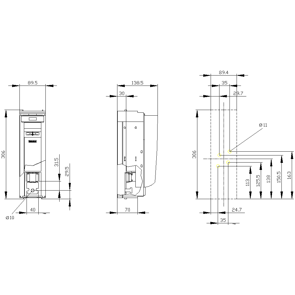 SIEMENS - SIE3NP11611DA10 SEZ.FUS.NH3 1P 630A FIX PIAST.70MM SBAR - 3NP11611DA10