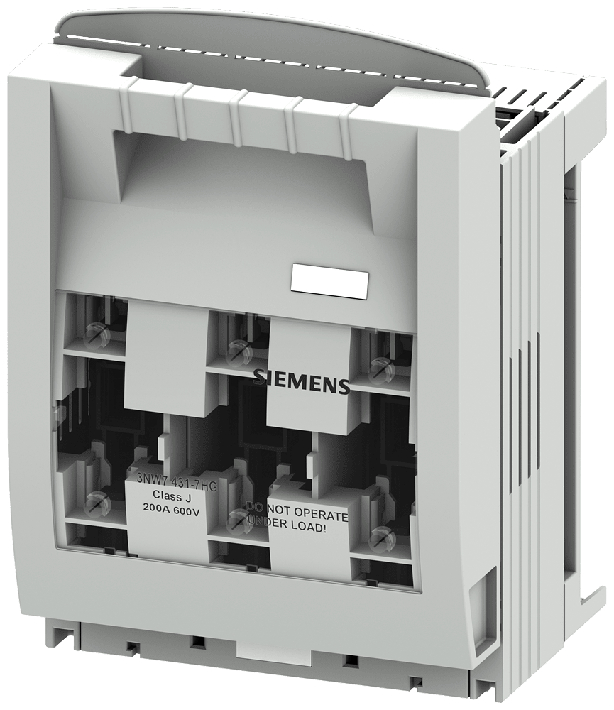 SENTRON, portafusibile, Classe J, a 3 poli, In: 200 A, Un AC: 600 V, per sistema di sbarre collettrici 8US 60mm, rispettare le norme di installazione nazionali! Portafusibili 3NW7 per sistemi di fusibili SENTRON UL per la protezione impianto selettiva. Isistemi di sicurezza UL hanno lomologazione UL e CSA per limpiego nel mercato nordamericano. I fusibili Class CC vengono impiegati per applicazioni di Branch Circuit Protection. Le cartucce fusibili Class J vengono impiegate per applicazioni di Branch Circuit Protection e nel Feeder Circuit. Dispositivi di protezione SENTRON - Una scelta sicura.