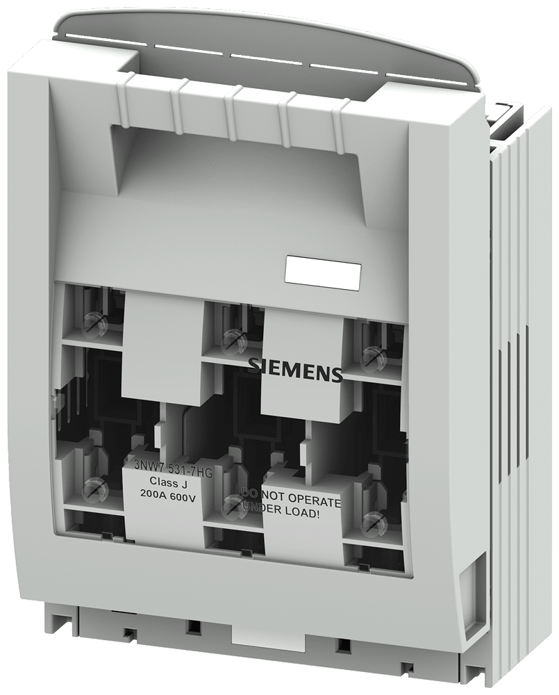 SENTRON, portafusibile, Classe J, a 3 poli, In: 200 A, Un AC: 600 V, montaggio su piastra di montaggio, rispettare le norme di installazione nazionali! Portafusibili 3NW7 per sistemi di fusibili SENTRON UL per la protezione impianto selettiva. I sistemi di sicurezza UL hanno lomologazione UL e CSA per limpiego nel mercato nordamericano. I fusibili Class CC vengono impiegati per applicazioni di Branch Circuit Protection. Le cartucce fusibili Class J vengono impiegate per applicazioni di Branch Circuit Protection e nel Feeder Circuit. Dispositivi di protezione SENTRON - Una scelta sicura.