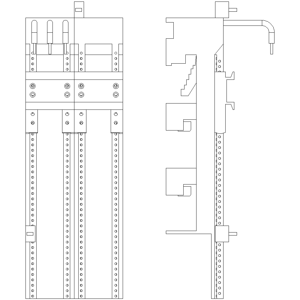 kit di cablaggio per collegamento a vite elettrico e meccanico completo per partenze senza fusibili, grandezza costruttiva S00 per sistema di sbarre collettrici 60 mm consiste di modulo di cablaggio adattatore per sbarre collettrici portapparecchi e moduli laterali Semplice, efficiente, sempre attuale - il sistema modulare SIRIUS.