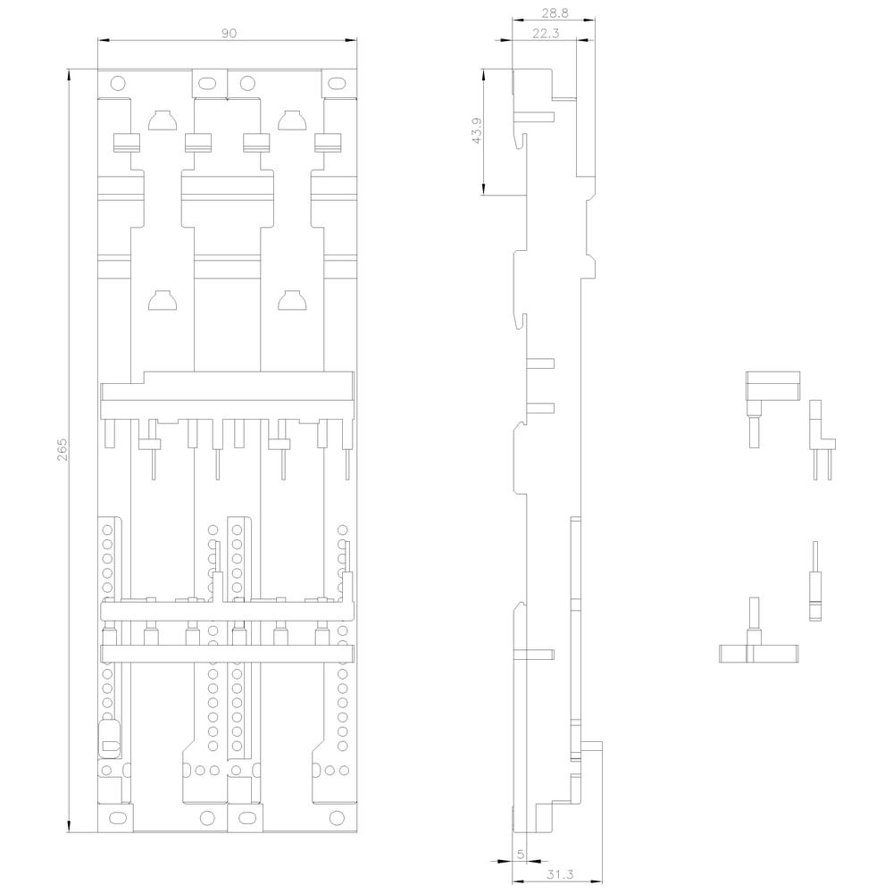 modulo di collegamento per collegamento a vite elettrico e meccanico completo per partenze senza fusibili, grandezza costruttiva S0 per il montaggio su guida DIN consiste di modulo di cablaggio adattatore per guida DIN e moduli laterali Semplice, efficiente, sempre attuale - il sistema modulare SIRIUS.