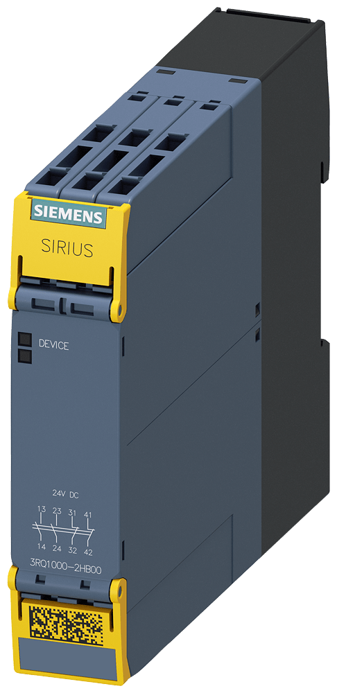 morsetto dinterfaccia a relè a guida forzata in custodia industriale 2 NO / 2 NC DC 24 V SIL 2 / PL c morsetti a molla (push-in) Morsetti dinterfaccia a relè a guida forzata SIRIUS 3RQ1 per laccoppiamento sicuro di segnali di comando da e verso un controllore e lampliamento dei contatti dei dispositivi di sicurezza 3SK. Questo morsetto dinterfaccia a relè a guida forzata 3RQ1 è dotato di certificazione Safety e può essere collegato ai dispositivi di sicurezza 3SK con un cablaggio ridotto mediante connettori di apparecchiatura. I morsetti rimovibili facilitano la sostituzione dellapparecchio e un rapido cablaggio. Sono disponibili apparecchi con una certificazione Safety fino a SIL 3/PL e, con campo di tensione singolo e wide-range, varie esecuzioni di contatti, anche in larghezza costruttiva 17,5 mm, rispettivamente con morsetti a vite o a molla (push-in). Relè SIRIUS - un programma per ogni evenienza.