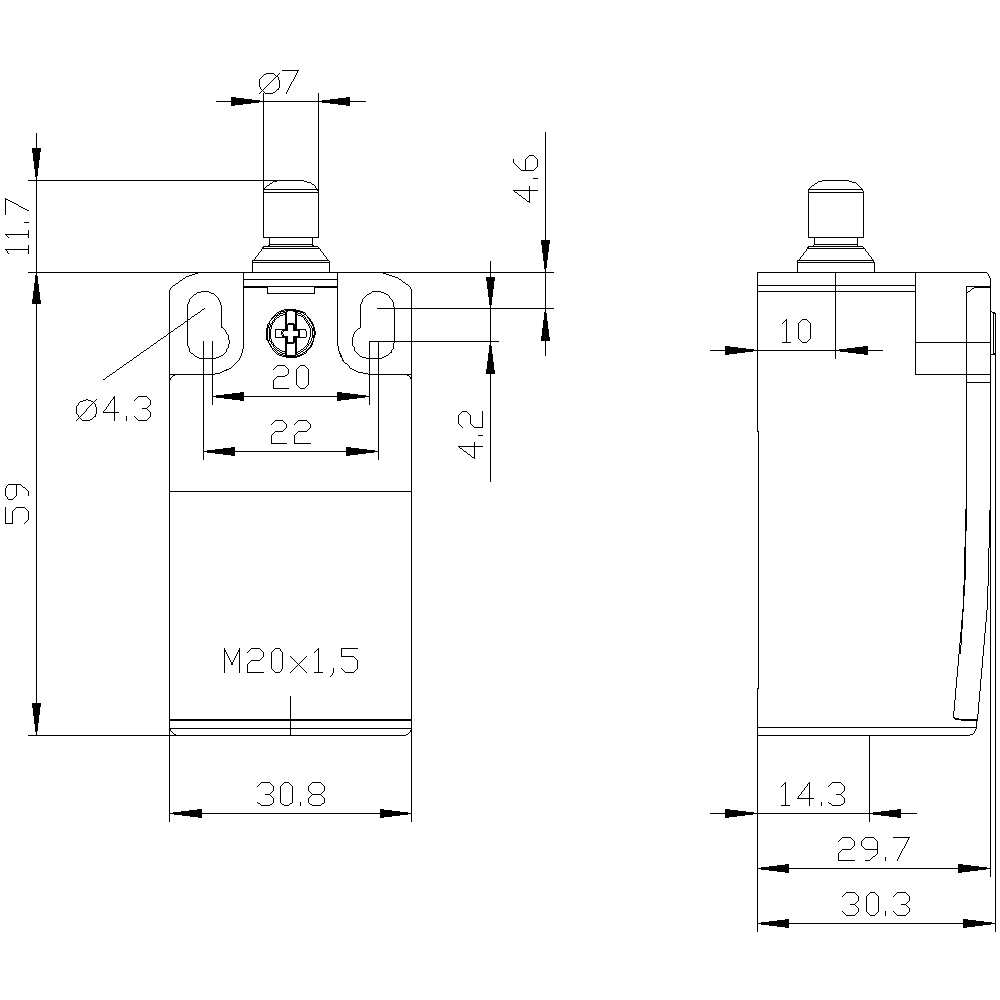 SIEMENS - SIE3SE55320FC051AM0 POS. SW. ROL. PLU. SHORT STROKE 1NO+1NC - 3SE55320FC051AM0