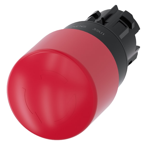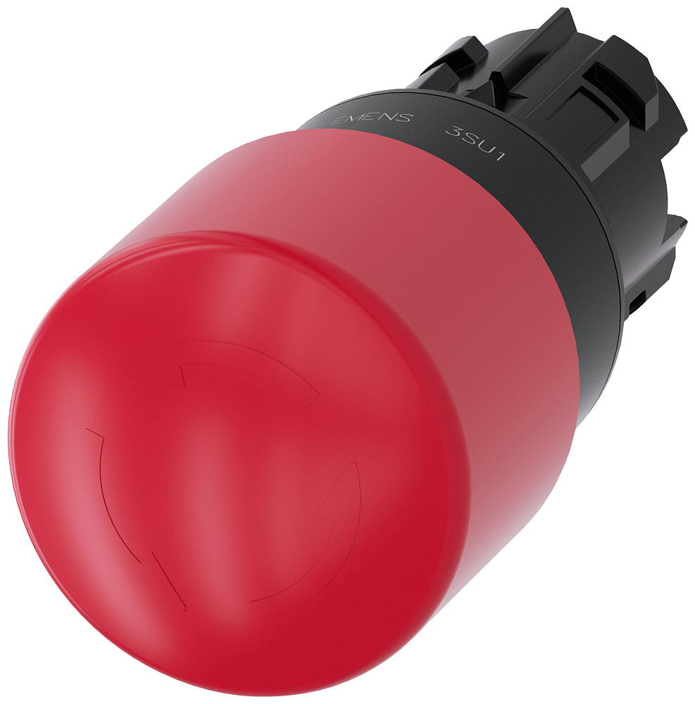 pulsante a fungo di ARRESTO DI EMERGENZA, 22 mm, rotondo, in plastica, rosso, 30 mm, permanente con blocco positivo, secondo DIN EN ISO 13850, sblocco a rotazione Pulsante a fungo di ARRESTO DI EMERGENZA SIRIUS ACT secondo EN ISO 13850 per il comando di applicazioni relative alla sicurezza a prova di manomissione. Siemens offre, sotto il nome commerciale SIRIUS ACT, un portfolio esclusivo di dispositivi di comando e segnalazione con omologazioni di prodotto per il mercato mondiale in tre moderne serie didesign in robusto metallo puro e plastica pregiata.Linnovativo concetto di innesto a scatto semplifica talmente il montaggio che per eseguirlo basta una sola mano e non servono attrezzi speciali. Per i fori di montaggio sono sufficienti semplici fori nonscanalati, essendo già integrata una protezione antirotazione al 100 %.Grazie al grado di protezione elevato i robusti apparecchi sono adatti allimpiego industriale e in ambiente esterno. È persino possibile la pulizia con getto ad alta pressione. Né polvere, né oli, né liscivia possono comprometterne il funzionamento affidabile.Oltre che con il cablaggio standard, gli apparecchi possono essere collegati al controllore anche tramite PROFINET, AS-Interface oppure IO-Link. Potete così ridurre il vostro onere di cablaggio, minimizzare le fonti di errore e ottenere maggiore flessibilità.Il configuratore online grafico supporta in modo confortevole la scelta e lordinazione di singoli apparecchi, pulsantiere e iscrizioni. È disponibile una documentazione completa (ad es. manuale, dati 3D, schema di collegamento). Esecuzioni fornibili: diametro del fungo di 30/40/60 mm, luminoso/non luminoso, sblocco a trazione/a rotazione/a chiave. Avvertenza: Apparecchio singolo, supporti e moduli devono essere ordinati separatamente. SIRIUS ACT - Performance in Action nel comando e nella segnalazione. Semplici da montare, altamente performanti, semplicemente perfetti.