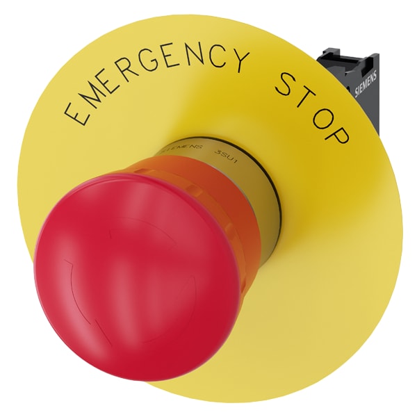pulsante a fungo di ARRESTO DI EMERGENZA, 22 mm, rotondo, in metallo, lucido, rosso, 40 mm, permanente con blocco positivo, a norma DIN EN ISO 13850, sblocco a rotazione, con disco targhetta giallo, iscrizione: EMERGENCY STOP, con supporto, 1 NC, morsetto a vite Pulsante a fungo di ARRESTO DI EMERGENZA SIRIUS ACT secondo EN ISO 13850 per il comando di applicazioni relative alla sicurezza a prova di manomissione. Siemens offre, sotto il nome commerciale SIRIUS ACT, un portfolio esclusivo di dispositivi dicomando e segnalazione con omologazioni di prodotto per il mercato mondiale in tre moderne serie di design in robusto metallo puro e plastica pregiata.Linnovativo concetto di innesto a scatto semplifica talmente il montaggio che per eseguirlo basta una sola mano e non servono attrezzi speciali. Per i fori di montaggio sono sufficienti semplici fori non scanalati, essendo già integrata una protezione antirotazione al 100 %.Grazie al grado di protezione elevato i robusti apparecchi sono adatti allimpiego industriale e in ambiente esterno. È persino possibile la pulizia con getto ad alta pressione. Né polvere, né oli, né liscivia possono comprometterne il funzionamento affidabile.Oltre che con il cablaggio standard, gli apparecchi possono essere collegati al controllore anche tramite PROFINET, AS-Interface oppure IO-Link. Potete così ridurre il vostro onere di cablaggio, minimizzare le fonti di errore e ottenere maggiore flessibilità.Il configuratore online grafico supporta in modo confortevole la scelta e lordinazione di singoli apparecchi, pulsantiere e iscrizioni. È disponibile una documentazione completa (ad es. manuale, dati 3D, schema di collegamento). Esecuzioni fornibili: diametro del fungo di 30/40/60 mm, luminoso/non luminoso, sblocco a trazione/arotazione/a chiave. Avvertenza: Apparecchio completo, fornitura incl. supporto e moduli. SIRIUS ACT - Performance in Action nel comando e nella segnalazione. Semplici da montare, altamente performanti, semplicemente perfetti.