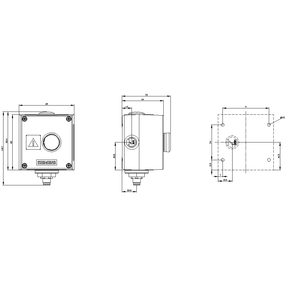 SIEMENS - SIE3SU18510AG004NB1 MET. ENCL./PUSHB. BL PL,1NO,M12-CONNECT. - 3SU18510AG004NB1