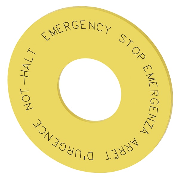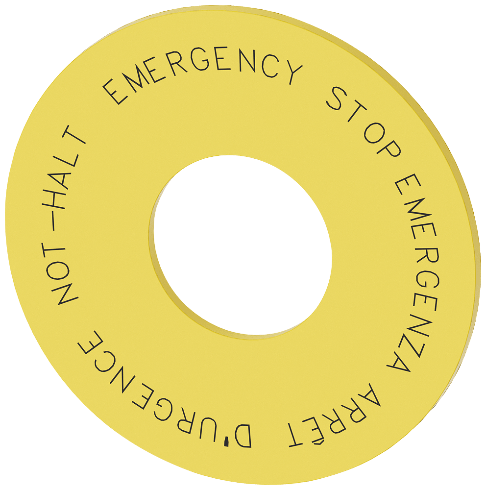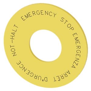 disco targhetta per ARRESTO DI EMERGENZA, giallo, diametro esterno 60 mm, diametro interno 22,5 mm, spessore 2 mm, con iscrizione: NOT-HALT, EMERGENCY STOP, ARRÊT DURGENCE EMERGENZA in 4 lingue: de,en,fr,it Disco targhetta per ARRESTO DI EMERGENZA per lasiglatura dei dispositivi di comando e segnalazione SIRIUS ACT. Siemens offre, sotto il nome commerciale SIRIUS ACT, un portfolio esclusivo di dispositivi di comando e segnalazione con omologazioni di prodotto per il mercato mondiale in tre moderne seriedi design in robusto metallo puro e plastica pregiata.Linnovativo concetto di innesto a scatto semplifica talmente il montaggio che per eseguirlo basta una sola mano e non servono attrezzi speciali. Per i fori di montaggio sono sufficienti semplici fori non scanalati, essendo già integrata una protezione antirotazione al 100 %.Grazie al grado di protezione elevato i robusti apparecchi sono adatti allimpiego industriale e in ambiente esterno. È persino possibile la pulizia con getto ad alta pressione. Né polvere, né oli, né liscivia possono comprometterne il funzionamento affidabile.Oltre che con il cablaggio standard, gli apparecchi possono essere collegati al controllore anche tramite PROFINET, AS-Interface oppure IO-Link. Potete così ridurre il vostro onere di cablaggio, minimizzare le fonti di errore e ottenere maggiore flessibilità.Il configuratore online grafico supporta in modo confortevole la scelta e lordinazione di singoli apparecchi, pulsantiere e iscrizioni. È disponibile una documentazione completa (ad es. manuale, dati 3D, schema di collegamento). Ampia gamma di accessori opzionali (ad es. targhette identificative, per protezione e accesso, operatori, accessori per pulsantiere). SIRIUS ACT- Performance in Action nel comando e nella segnalazione. Semplici da montare, altamente performanti, semplicemente perfetti.