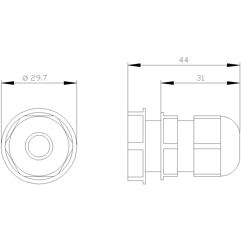 raccordo a vite metrico M25 con dado esagonale per custodia Pressacavo a vite metrico come accessori per dispositivi di comando e segnalazione SIRIUS ACT. Siemens offre, sotto il nome commerciale SIRIUS ACT, un portfolio esclusivo di dispositivi di comando e segnalazione con omologazioni di prodotto per il mercato mondiale in tre moderne serie di design in robusto metallo puro e plastica pregiata.Linnovativo concetto di innesto a scatto semplifica talmente il montaggio che per eseguirlo basta una sola mano e non servono attrezzi speciali. Per i fori di montaggiosono sufficienti semplici fori non scanalati, essendo già integrata una protezione antirotazione al 100 %.Grazie al grado di protezione elevato i robusti apparecchi sono adatti allimpiego industriale e in ambiente esterno. È persino possibile la pulizia con getto ad alta pressione. Né polvere, né oli, né liscivia possono comprometterne il funzionamento affidabile.Oltre che con il cablaggio standard, gli apparecchi possono essere collegati al controllore anche tramite PROFINET, AS-Interface oppure IO-Link. Potete così ridurre il vostro onere di cablaggio, minimizzare le fonti di errore e ottenere maggiore flessibilità.Il configuratore online grafico supporta in modo confortevole la scelta e lordinazione di singoli apparecchi, pulsantiere e iscrizioni. È disponibile una documentazione completa (ad es. manuale, dati 3D, schema di collegamento). Ampia gamma di accessori opzionali (ad es. targhette identificative, per protezione e accesso, operatori, accessori per pulsantiere). SIRIUS ACT - Performance inAction nel comando e nella segnalazione. Semplici da montare, altamente performanti, semplicemente perfetti.