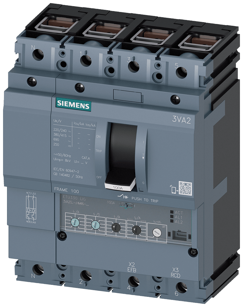 SIEMENS - SIE3VA20106HM460AA0 INT.AUT.3VA 100A 4P 85KA ETU3 LIG B/T - 3VA20106HM460AA0