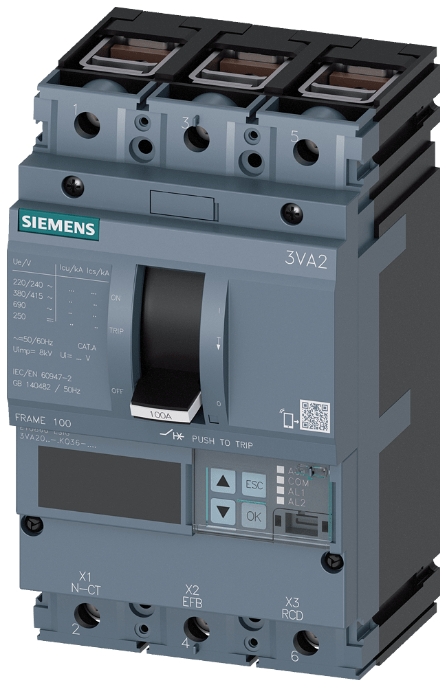 SIEMENS - SIE3VA20635KQ360AA0 INT.AUT.3VA 63A 3P 55KA ETU8 LSIG B/T - 3VA20635KQ360AA0